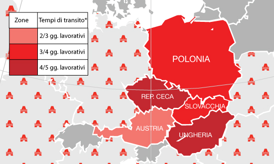 *Tempi di transito indicativi. Possono variare a seconda della zona. Per informazioni sulle nazioni servite dal network Artoni Europe clicca qui.